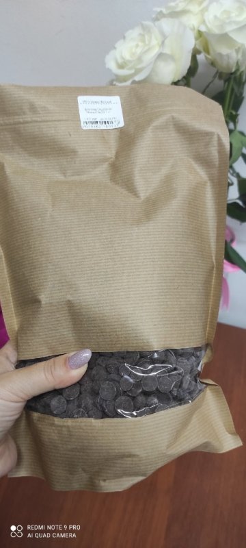 Отличный шоколад! Упаковка закрыта на zip застежку -очень удобно при дальнейшем применении. Сбоку- информация о шкале температур для темперирования Этот шоколад отлично сочетается с самыми разными ингредиентами от сладких начинок до жгучих перцев, подходит как для корпусных конфет так и для крема, ганаша, соуса, мусса, начинок для макарон. При приготовлении выпечки с добавлением этого шоколада, дома стоит тааакой соблазнительный аромат, что текут слюнки ))))