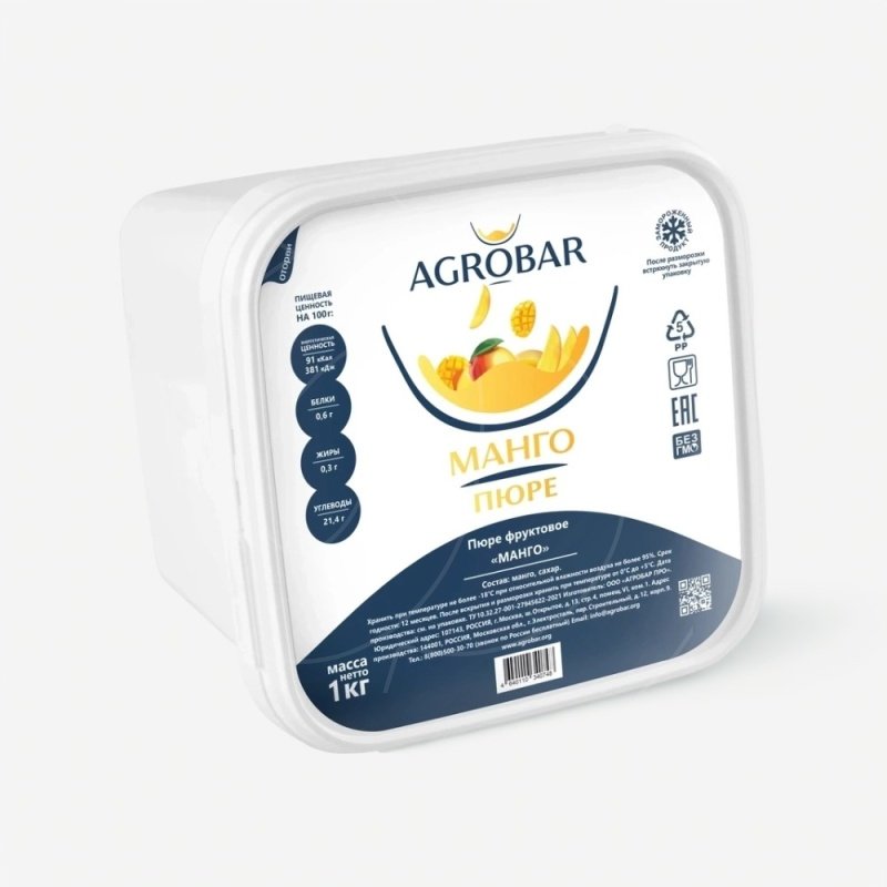 Доставка Пюре замороженное AGROBAR Манго 1 кг из магазина в вашем городе: