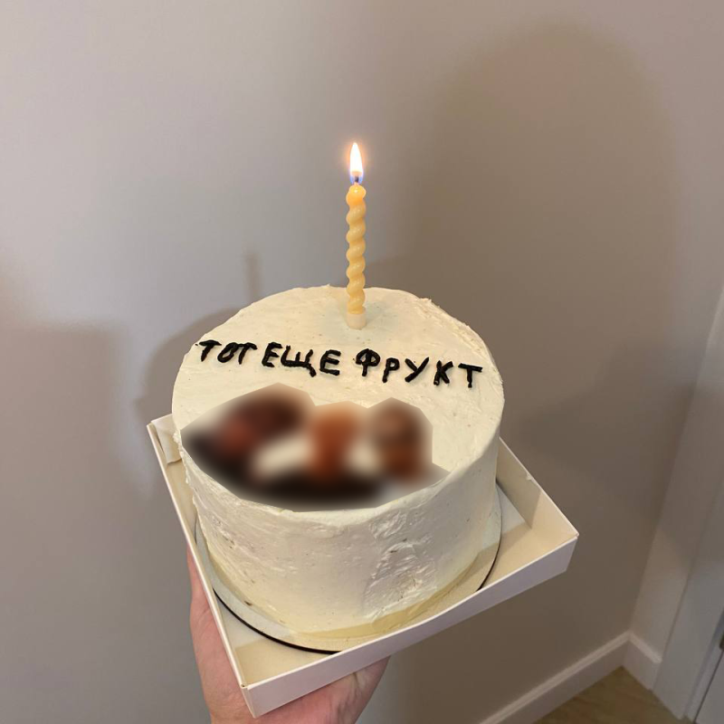 Наконец-то черный краситель, который не мигрировал на торт! Я все равно нанесла в качестве подложки белый текст, но даже на фото видно, что надпись не покрасила его. Обычно черный подкрашиваю углем, здесь не пришлось, цвет и так хорош