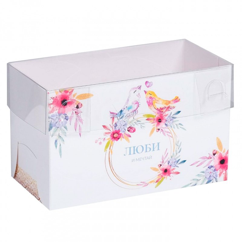 Коробка на 2 капкейка с прозрачной крышкой "Люби" 16х8х10 см