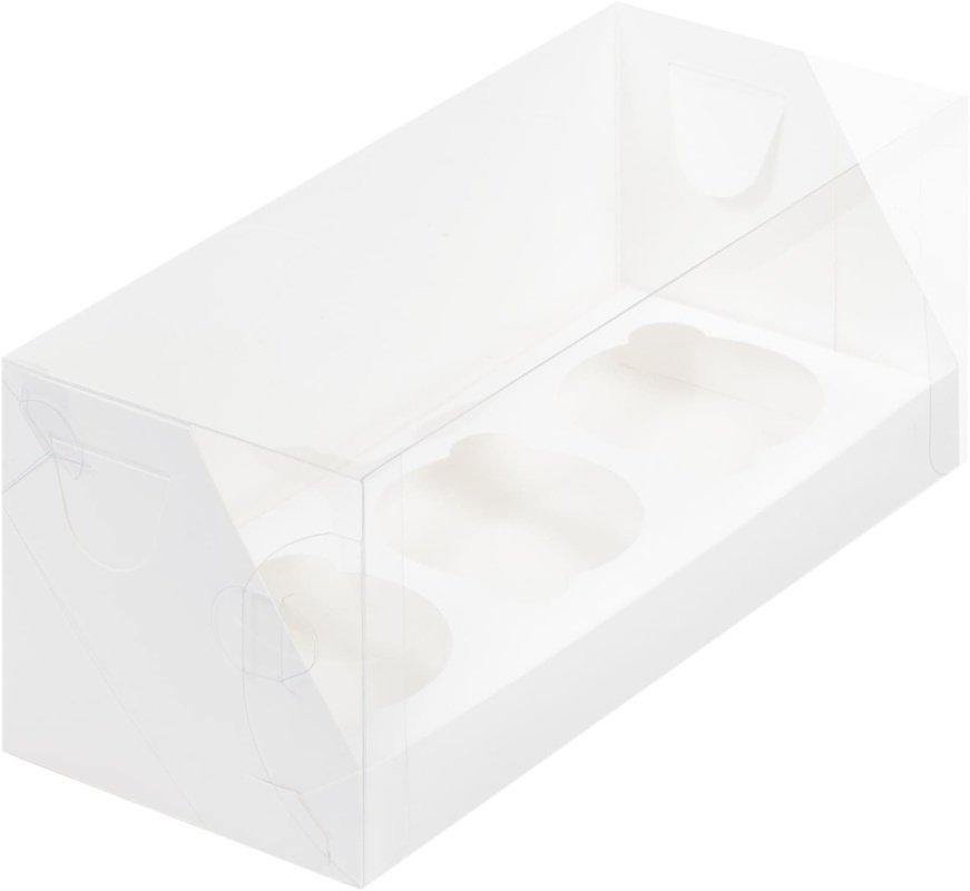 Доставка Коробка на 3 капкейка с прозрачной крышкой белая 24х10х10 см из магазина в вашем городе: