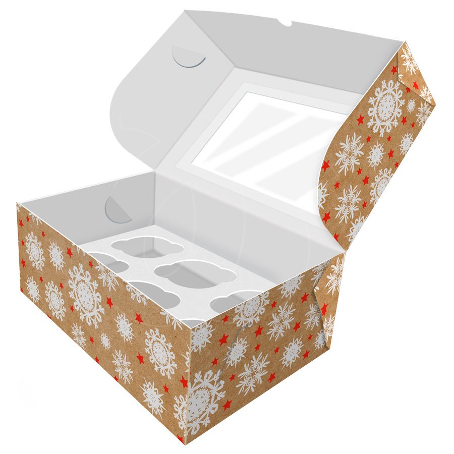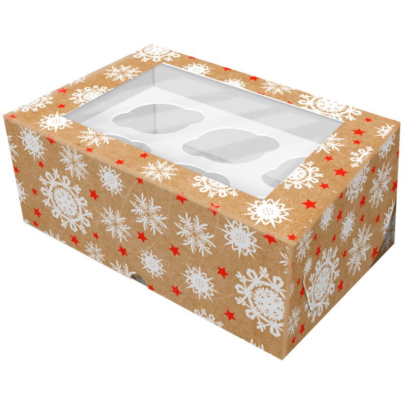 Доставка Коробка на 6 капкейков с окном "Снежинки" 25х17х10 см из магазина в вашем городе: