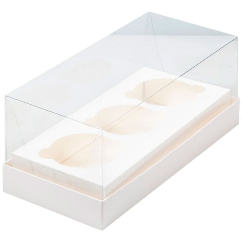 Доставка Коробка на 3 капкейка с прозрачной крышкой белая 24х10х10 см из магазина в вашем городе: