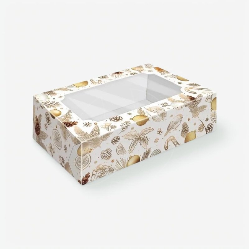 Доставка Коробка для зефира с окном "Золотой Новый Год" 25х15х7 см из магазина в вашем городе: