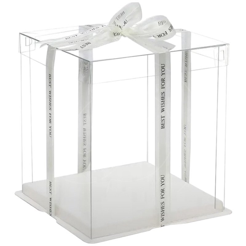 Прозрачная коробка для торта самосборная и не требует дополнительного скрепления.