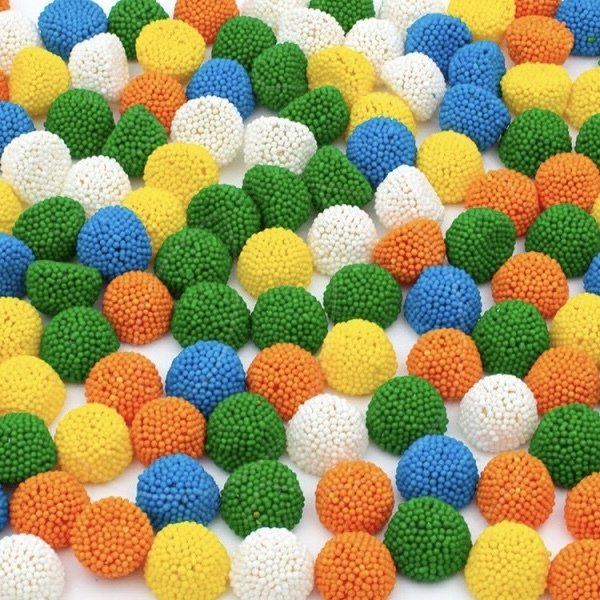 Составсахар, сироп глюкозы, вода, декстроза, желирующий агент: желатин, рисовая мука, инвертный сахарный сироп, подсолнечное масло, желирующий агент: пектин, кислота: лимонная кислота, картофельный крахмал, ароматизаторы идентичные натуральным, глазирующие вещества: гуммиарабик, пчелиный воск, карнаубский воск, красители: тартразин, красный очаровательный АС, бриллиантовый синий FCF