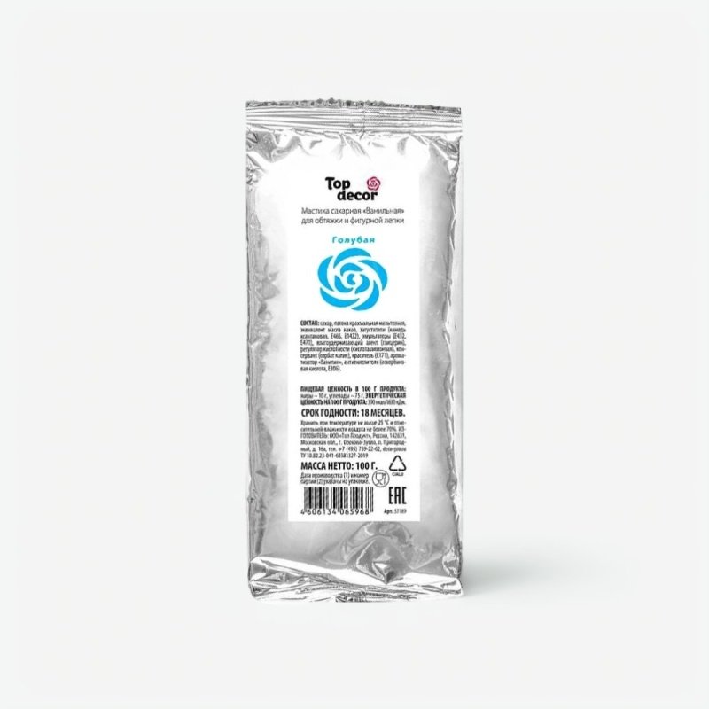 Доставка Мастика кондитерская ванильная Top Decor "Голубая" 100 г из магазина в вашем городе: