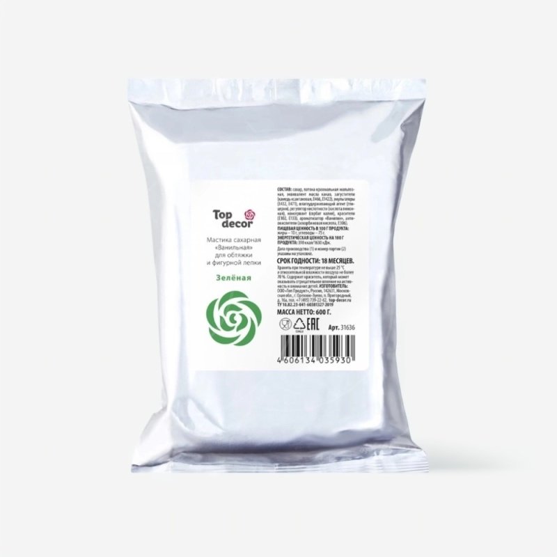 Доставка Мастика кондитерская ванильная Top Decor "Зелёная" 600 г из магазина в вашем городе: