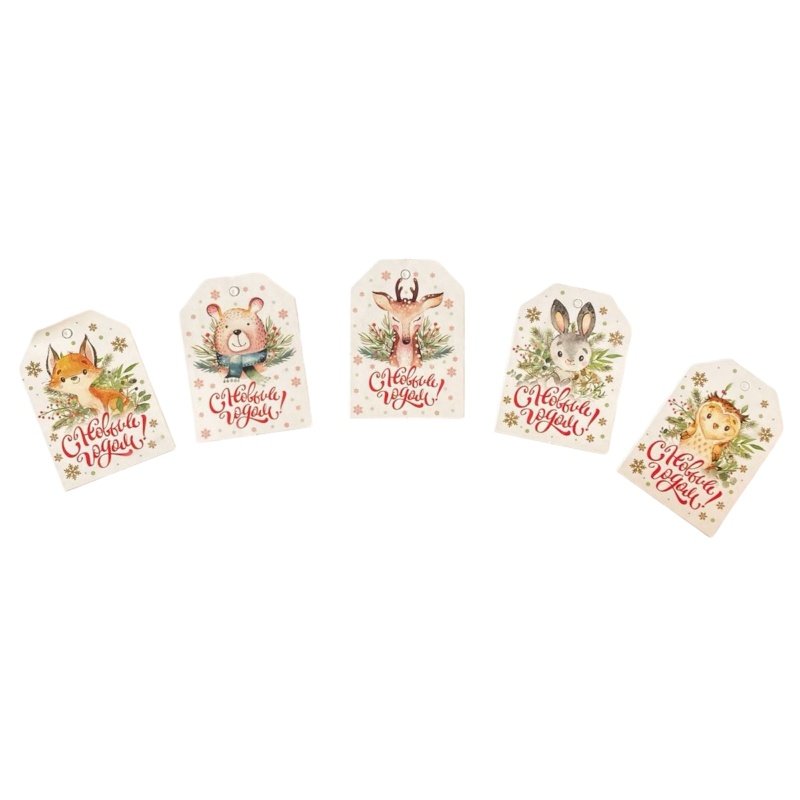 Набор декоративных бирок "Новогодние зверушки" 5 шт