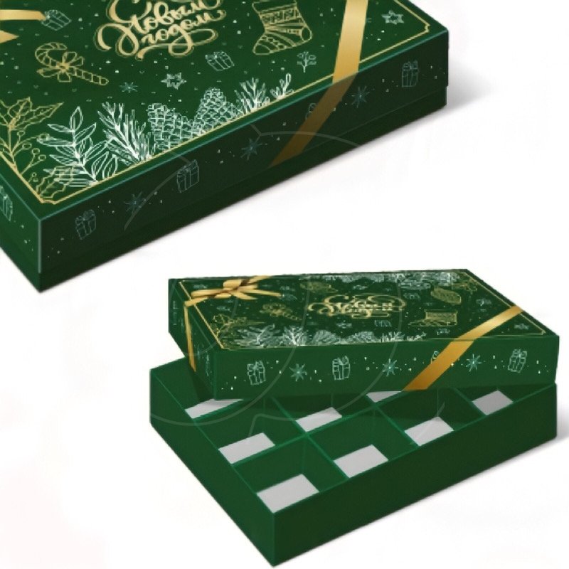 Коробка на 12 конфет "Изумрудный Новый Год"