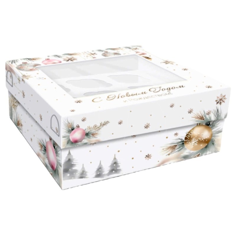 Доставка Коробка на 9 капкейков с окном "Снежный праздник" 25х25х10 см из магазина в вашем городе: