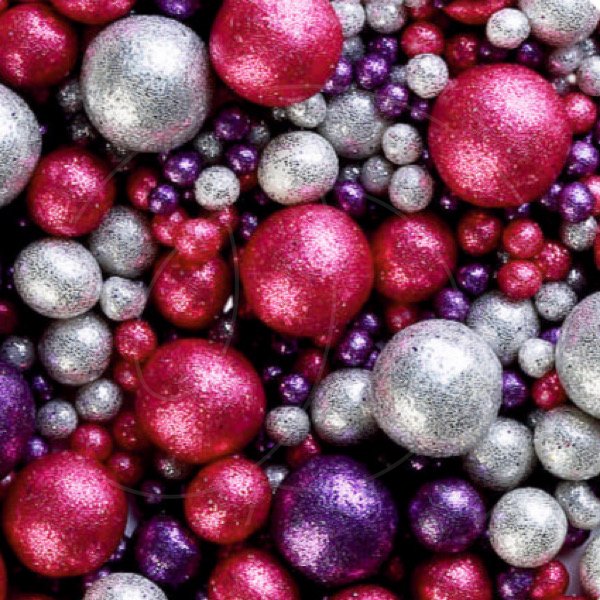 Жемчужная посыпка покрыта ярким пищевым блеском праздничных оттенков.