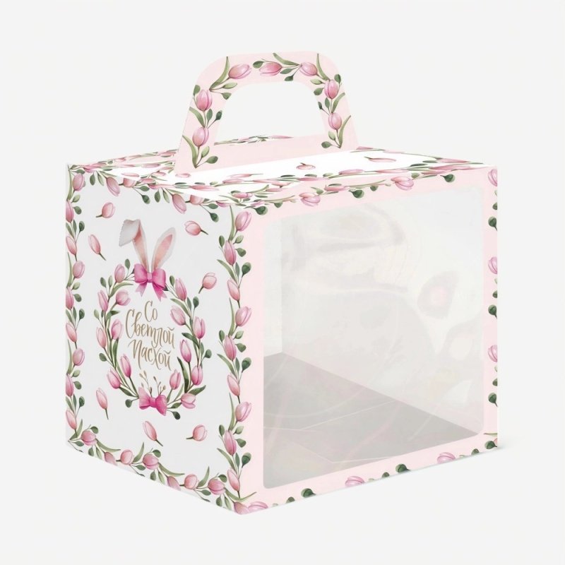 Доставка Коробка для торта/кулича с окном "Тюльпаны" 15х15х18 см из магазина в вашем городе: