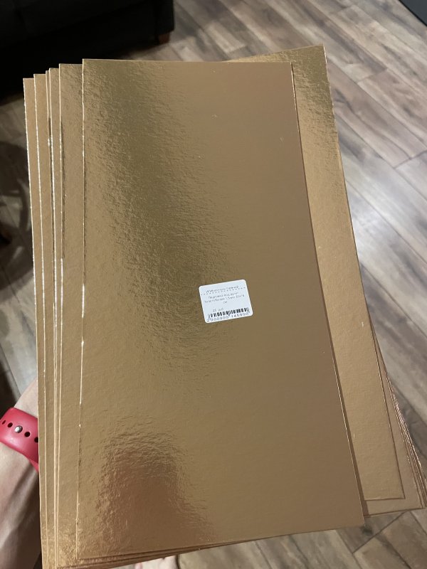 Золотая сторона выполнена из картона с ламинированным жиростойким покрытием.
