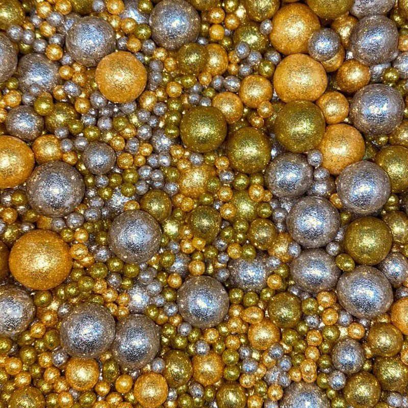 Доставка Посыпка кондитерская из дутого риса жемчуг блестящий "Золото-серебряный микс" 50 г из магазина в вашем городе: