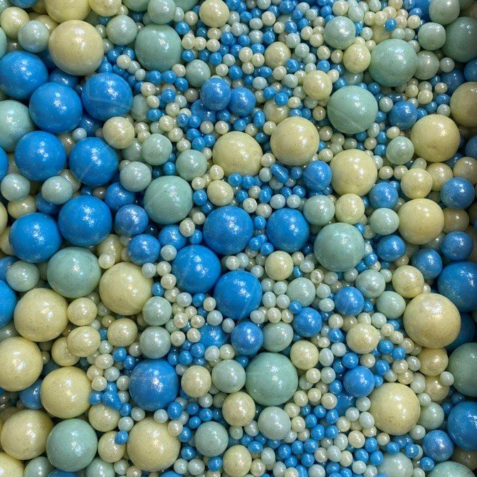 Доставка Посыпка кондитерская из дутого риса жемчуг "Жёлто-зелёно-бирюзовый микс" 50 г из магазина в вашем городе: