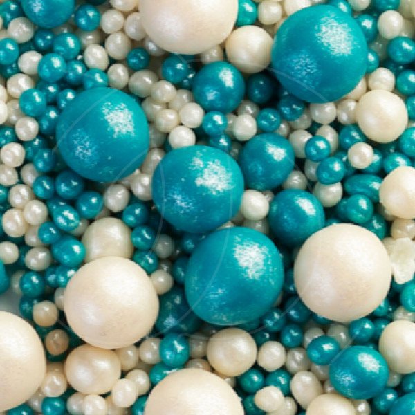 Жемчужная посыпка покрыта ярким пищевым блеском белого и голубого цвета.