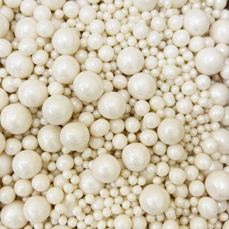 Жемчужная посыпка покрыта ярким пищевым блеском.