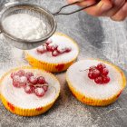Пудру можно наносить на горячую выпечку при температуре поверхности 60-80°С.