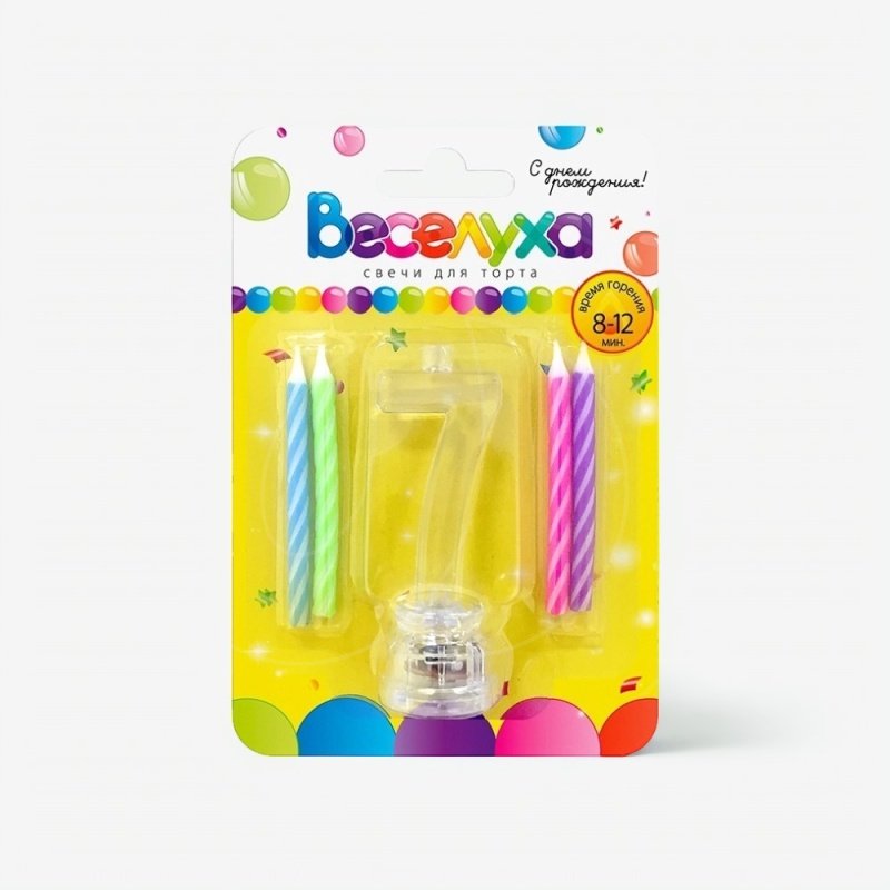 Доставка Набор тортовых классических свечей с мигающим держателем Цифра "7" из магазина в вашем городе: