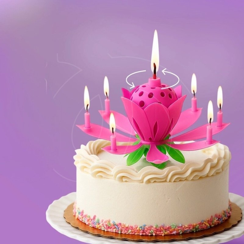После этого цветок раскроется, загорится 8 дополнительных свечек, заиграет музыка, а тюльпан начнет вращение.