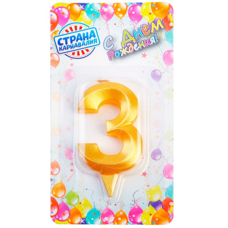 Доставка Свеча декоративная Цифра "3" Грань Золото из магазина в вашем городе: