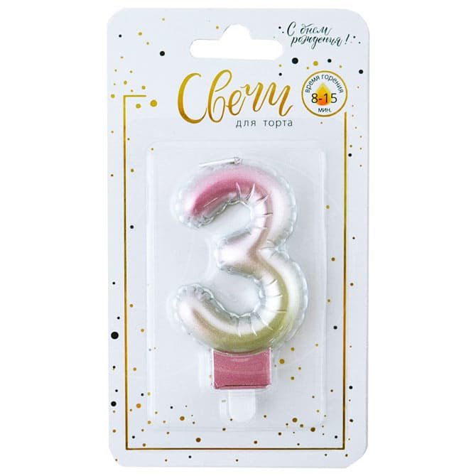 Доставка Свеча декоративная Цифра "3" Нежный Градиент из магазина в вашем городе: