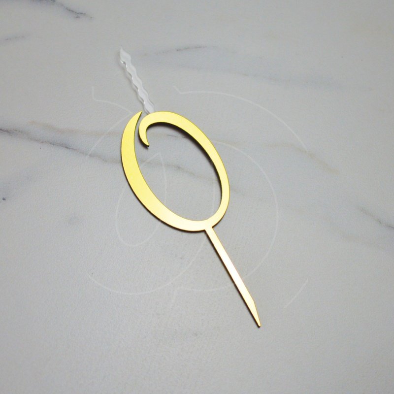 Свеча-топпер декоративная акриловая Цифра "0" Золото