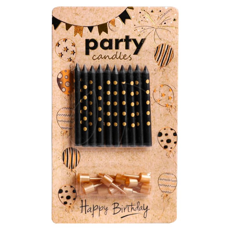 Доставка Свечи декоративные Чёрные в золотой горошек 10 шт из магазина в вашем городе: