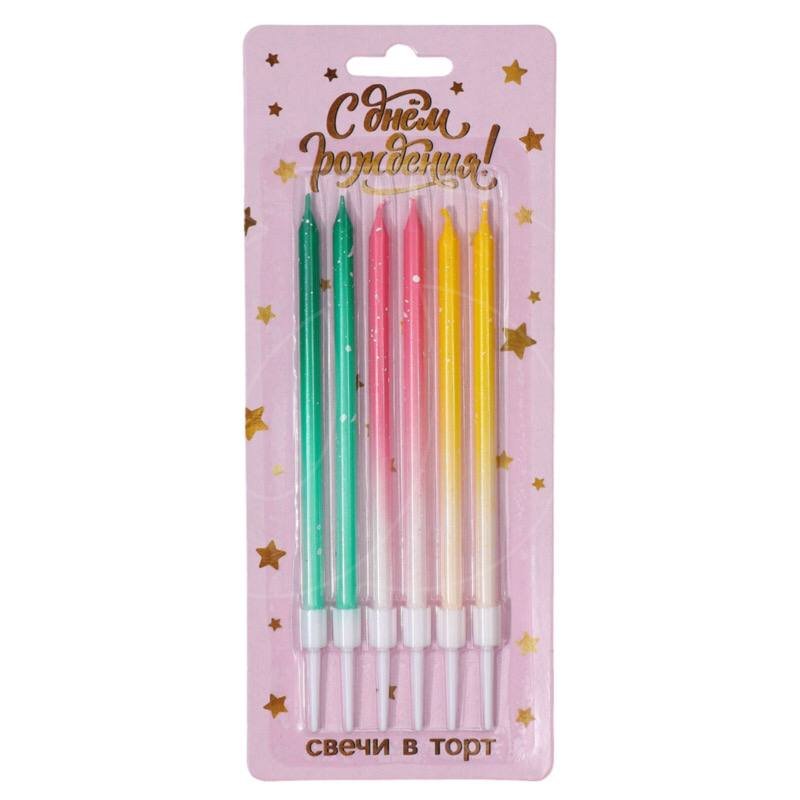 Свечи декоративные "С Днём Рождения" Красный, Жёлтый, Зелёный 6 шт