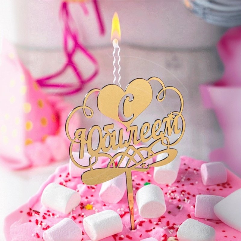 Доставка Свеча-топпер декоративная акриловая "С Юбилеем" Золото из магазина в вашем городе: