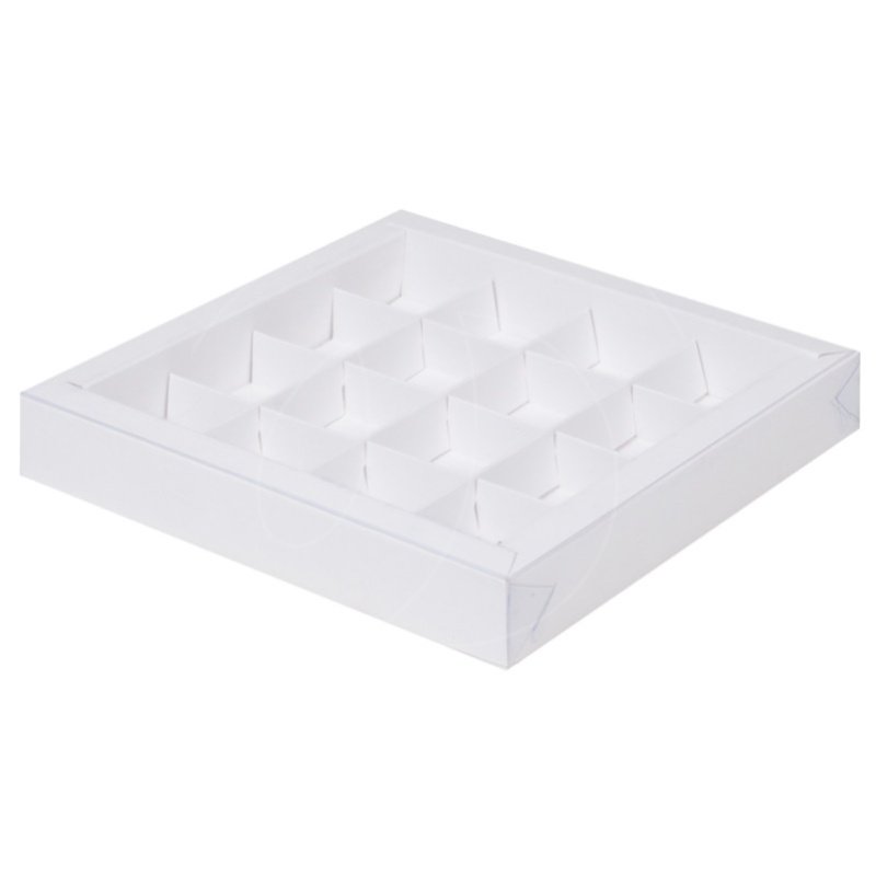 Коробка на 16 конфет с прозрачной крышкой белая 20х20х3 см