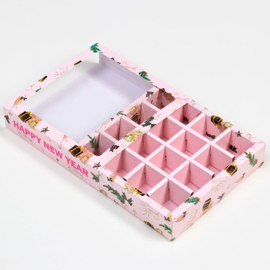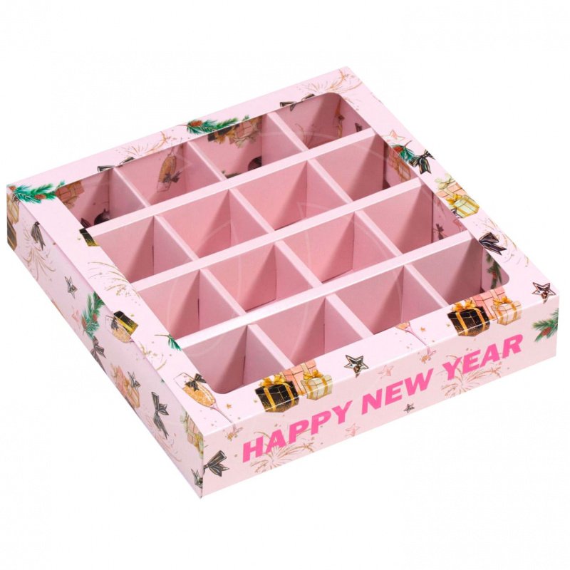 Доставка Коробка на 16 конфет с окном "Счастливого Нового Года!" 17,7х17,7х3,8 см из магазина в вашем городе:
