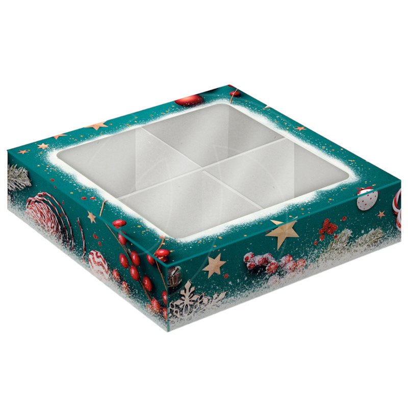 Доставка Коробка на 4 конфеты с окном "Новый год" бирюзовая 12,6х12,6х3,5 см из магазина в вашем городе: