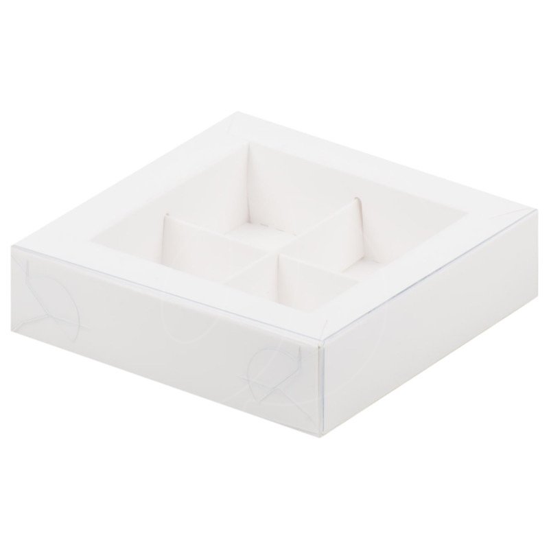 Коробка на 4 конфеты с прозрачной крышкой белая 12х12х3 см