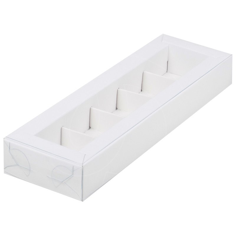 Коробка на 5 конфет с прозрачной крышкой белая 23,5х7х3 см