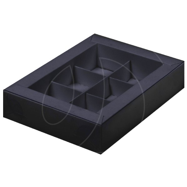 Доставка Коробка на 6 конфет с окном чёрная 13,7х9,8х3,8 см из магазина в вашем городе: