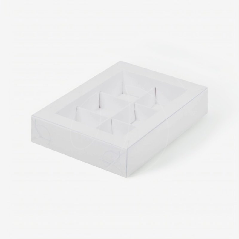 Доставка Коробка на 6 конфет с прозрачной крышкой белая 15,5х11,5х3 см из магазина в вашем городе: