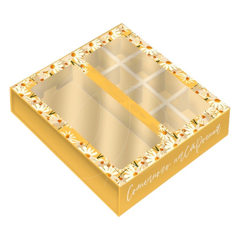 Доставка Коробка на 8 конфет и шоколадную плитку с окном "Ромашки" 17,5х17,5х4 см из магазина в вашем городе: