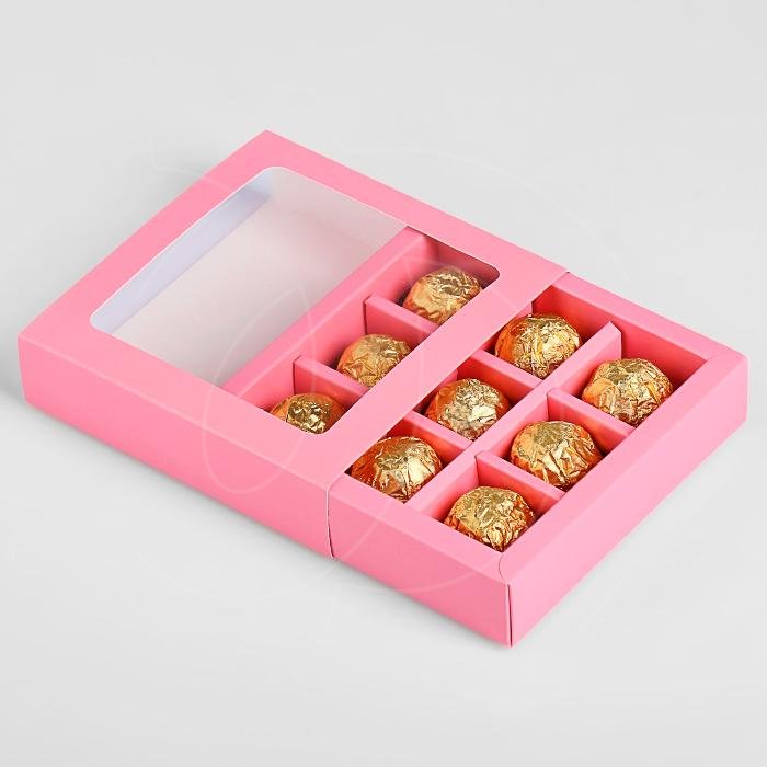 Доставка Коробка на 9 конфет раздвижная розовая 13,7х13,7х3,7 см из магазина в вашем городе:
