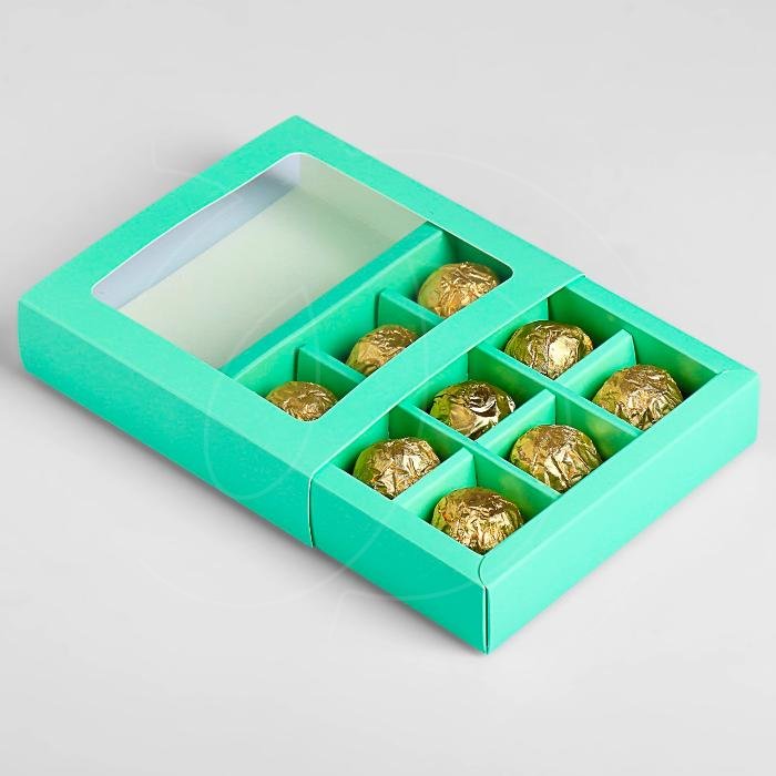 Доставка Коробка на 9 конфет раздвижная зелёная 13,7х13,7х3,9 см из магазина в вашем городе: