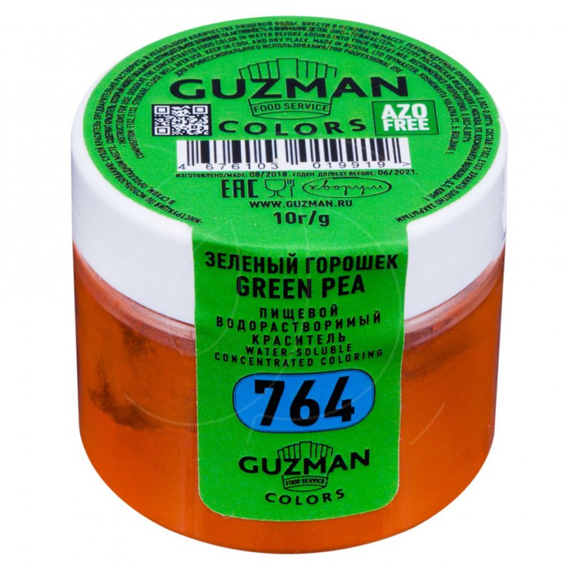 Доставка Краситель пищевой сухой водорастворимый GUZMAN 764 Зелёный горошек 10 г из магазина в вашем городе:
