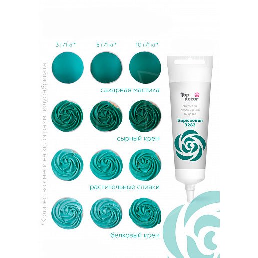 Доставка Краситель пищевой гелевый водорастворимый Top Decor "Бирюзовый" 100 г из магазина в вашем городе: