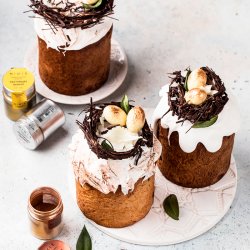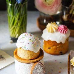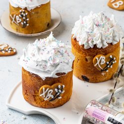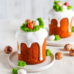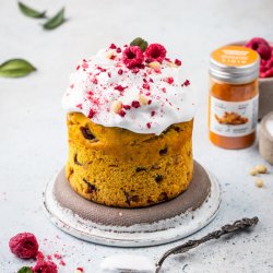 Бездрожжевой морковный кулич с карамельной грушей и меренгой