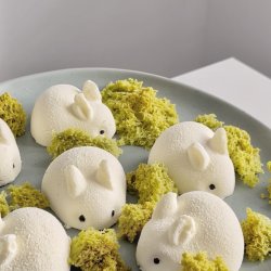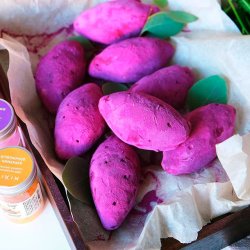 Фиолетовая Панна Котта с пудрой батата и черничным соусом